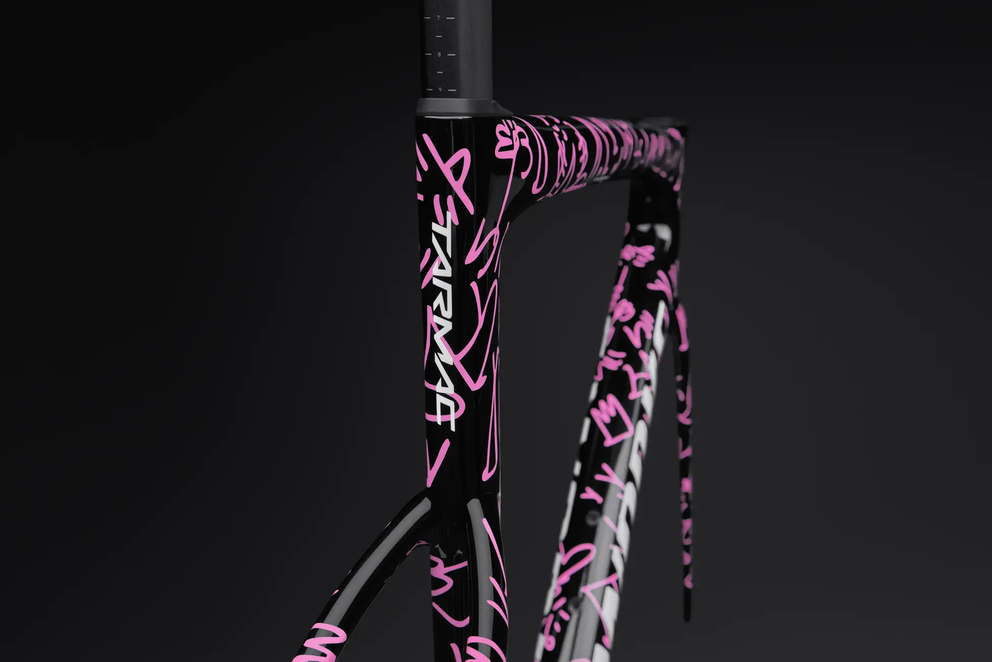 都市を切り裂くように走る静かで鋭いスピード感を、ユーン・ヒョプならではの手描きの質感とリズムで表現。街灯の明かりが滑走路のように伸びる夜明けや深夜のライドから着想を得て、スピードがフローへと変わる瞬間のエネルギーを描き出しています。隠し要素も散りばめられ、彼の躍動するデザインとTarmac SL8のスピードが融合した一台です。